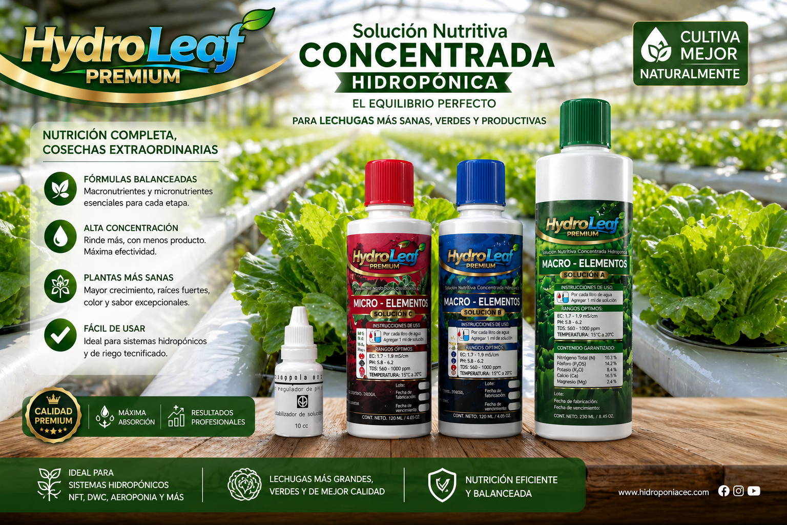 ✔ Optimización para sistemas hidropónicos modernos